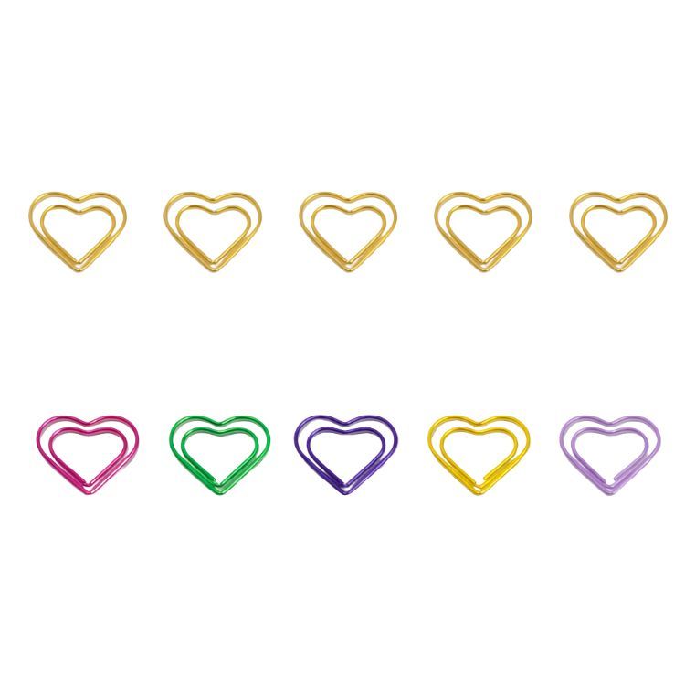 احصل على مشابك ورق أنيقة على شكل قلب باللون الذهبي وألوان متعددة للعلامات التجارية الفاخرة، مستلزمات الفعاليات الفاخرة، ومجموعات التجزئة الراقية.